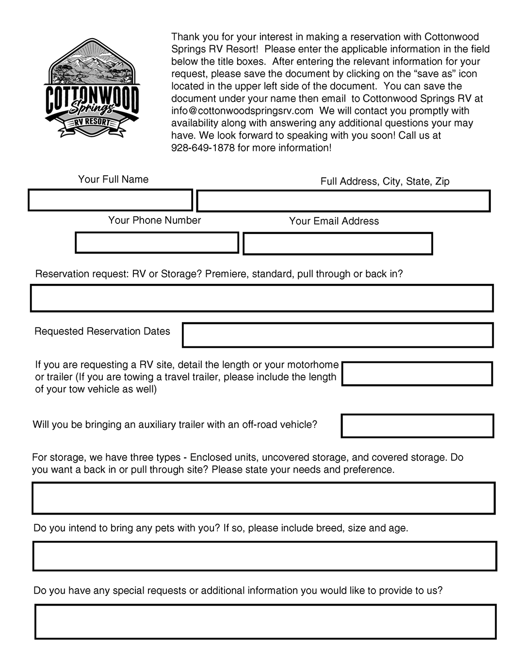 You may also call us at 928-649-1878.
