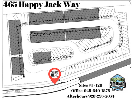The map below is a rendering of the covered storage area and lot numbers. Call or email us for more information!